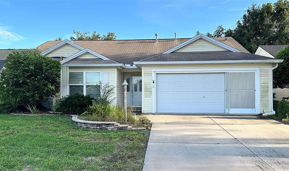 NEW ROOF WILL BE INSTALLED PRIOR TO CLOSING!! GREAT FLOOR PLAN IN THIS 2 BEDROOM 2 BATH HOME WITH OFFICE OR DEN. ADD AN ARMOIRE AND YOU HAVE 3 BEDROOMS!! SPACIOUS LIVING AREA WITH VAULTED CEILINGS OVERLOOKING LARGE SCREENED LANAI WHICH LEADS TO BIRDCAGE! BEDROOMS ARE GENEROUS SIZE AND THE GUEST IS STEPS TO THE GUEST BATH WHILE THE PRIMARY HAS AN ENSUITE BATH WITH DOUBLE SINKS AND LARGE STEP IN SHOWER. PRIMARY BEDROOM HAS WALK IN CLOSET AND THE ENTIRE HOME HAS ELECTRIC BLINDS…RAISE AND LOWER THEM AT THE TOUCH OF A BUTTON. GRANITE COUNTERTOPS IN KITCHEN AND BATHS AND KITCHEN FEATURES ABUNDANT CABINETS, WOOD CABINETS, LAZY SUSAN IN CORNER, EAT AT BAR AND PLENTY OF WORK SPACE PLUS A BREAKFAST NOOK. THE BREAKFAST NOOK HAS A BAY WINDOW AND BENCH SEATING WITH STORAGE. 2 CAR GARAGE WITH SLIDING SCREEN DOORS, STORM DOOR, ALARM SYSTEM AND ON DEMAND WATER HEATER ROUND OUT THIS HOME. SAVE ON HOME OWNERS INSURANCE TOO WITH A FIRE HYDRANT IN THE YARD!! ALL THIS IN THE VIBRANT COMMUNITY OF THE VILLAGES WITH IT’S 16 CHAMPIONSHIP GOLF COURSES, SPORTS, FAMILY AND ADULT ONLY POOLS, CLUBHOUSES, ACTIVITIES AND DON’T FORGET THE DOWNTOWN SQUARES!! THERE IS ALWAYS SOMETHING TO DO OR SOMEWHERE TO BE!! FINE DINING, SHOPPING AND MEDICAL ARE JUST A SHORT GOLF CART RIDE AWAY!!