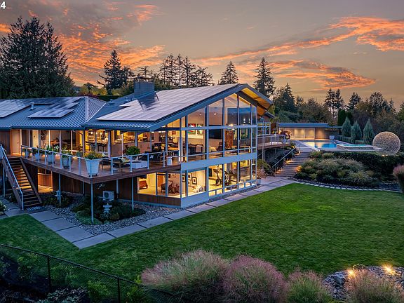Discover this extraordinary modern masterpiece in Lake Oswego’s exclusive Skylands neighborhood, where modern architecture and the beauty of the Pacific Northwest converge to create a true work of art. This meticulously transformed residence, reimagined by Seattle’s award-winning E. Cobb Architects, is perched on 1.5 acres, offering breathtaking, 180-degree views of three majestic mountains, the Willamette River, and valley. Anchored by a completely custom window wall system and an industrial-modern interior complete with a Crestron home automation system that controls the heating, lighting and entertainment systems, this home seamlessly integrates luxury, comfort, and nature. The recently resurfaced saltwater pool with a cascading waterfall feature invites relaxation, while a convenient pool house, expansive decks, and lush flat lawns provide unmatched entertaining spaces. Inside, radiant heated steel plate floors, a great room and chef’s kitchen with panoramic views, and a main-floor primary suite with a luxurious wet room bath redefine upscale living. This is a rare opportunity to live in a masterpiece that embraces every facet of refined Pacific Northwest luxury.