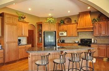 Spectacular Suburban Ranch on 5 acre cul-de-sac lot in Goddard Schools! One of a kind custom home with a fantastic open floor plan! The quality of this home is evident by the fabulous entry door system including a leaded glass entry door and matching sidelights with an elliptical transom window above! Open entry with tile floor, coat closet and plant shelf with lighting! Large great room with built-in entertainment center with intricate woodwork including fluted columns to ceiling, open rail stairway with wrought iron balusters, separate triple windows and wood floor! Awesome dining room with two sets of double windows with transoms and wood column trim, two corner display niches with lighting and wood floor! Incredible Granite kitchen with a huge arched opening, large island with under-mount sink and eating bar, roller trays in base cabinets, custom built range hood, large hidden walk-in pantry with window, built-in desk, upgraded Maytag appliances including a ceran top range with double ovens, can lighting and wood floor! Master bedroom boasts a double inset coffered ceiling with crown molding and lighting, double windows and ceiling fan! Luxurious master bath with garden tub with an arched opening and window above, separate 4' shower, double vanities with knee hole space makeup station between including a tower linen cabinet with roll top door, huge walk-in closet with double peninsula sweater racks on each side, high offseason hanging and door to laundry room! Off the kitchen is a fantastic family drop zone with built-in seats, hangers and shelving! The 1/2 bath has a pedestal sink and adjoins the main floor laundry room! Split from the master are two more nice sized bedrooms and a large full bath with a 4' vanity and linen closet! Mid-level walkout basement has a huge family room with built-in bookcases, an awesome furniture style bar with back bar, corner fireplace with a pellet stove insert including a wood and tile faced front with wood columns! Guest 1/2 ba