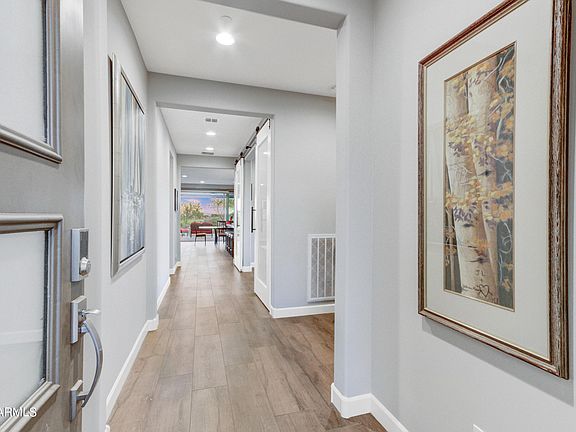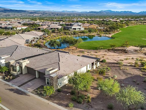 Rare Opportunity to own this highly desirable Valetta Floor Plan with one of the BEST VIEWS in the Resort section of the prestigious Trilogy at Verde River - with unparalleled Golf course, beautiful Lake, iconic Four Peaks, and brilliant Sunset views. This Opulent Residence perfectly positioned on the CORNER HOMESITE is a Pure Luxury! Soaring Wall of Glass is spilling onto Outdoor Living with Extended Patio designed for Alfresco entertaining with two Water Features, Built-in BBQ, oversized Pergola and a linear Firepit. The interior is spacious, comfortable, casual, yet elegant. Large island kitchen opens to a beautiful Great Room and enhances both family living and entertaining. The Gourmet Kitchen is a chef's dream featuring granite countertops, luxurious stainless steel appliances, farmh ouse sink and beautifully upgraded white cabinets. Window coverings include remote controlled blinds and plantation shutters. Garage has epoxy flooring and tankless water heater. Sliding Patio Door from the Primary bedroom brings in natural light, extended laundry room with extra cabinets provides additional storage and workspace. This home is an exceptional display of luxury and warmth. Other notable upgrades include wood look tile throughout, Reverse Osmosis system, smooth interior wall finish, integrated speaker system, custom Barn Doors enclosing the den and more. Experience the ultimate in Luxury Resort Living!