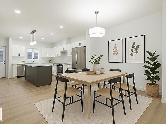 NO CONDO FEES! Crystallina Nera is rooted in natural beauty. A lush forest and a storm water pond surrounded by paved walking trails are ideal for nature lovers. The 'Deacon-T' END UNIT offers the perfect blend of comfort and style. Spanning approx. 1613 SQFT, this home offers a SIDE ENTRANCE, thoughtfully designed layout & modern features. As you step inside, you'll be greeted by an inviting open concept main floor that seamlessly integrates the living, dining, and kitchen areas. Abundant natural light flowing through large windows highlights the elegant laminate and vinyl flooring, creating a warm atmosphere for daily living and entertaining. Upstairs, you'll find a bonus room + 3 bedrooms that provide comfortable retreats for the entire family. The primary bedroom is a true oasis, complete with an en-suite bathroom for added convenience. $5000 BRICK CREDIT! PICTURES ARE OF SHOW HOME; ACTUAL HOME, PLANS, FIXTURES, AND FINISHES MAY VARY AND ARE SUBJECT TO CHANGE WITHOUT NOTICE.