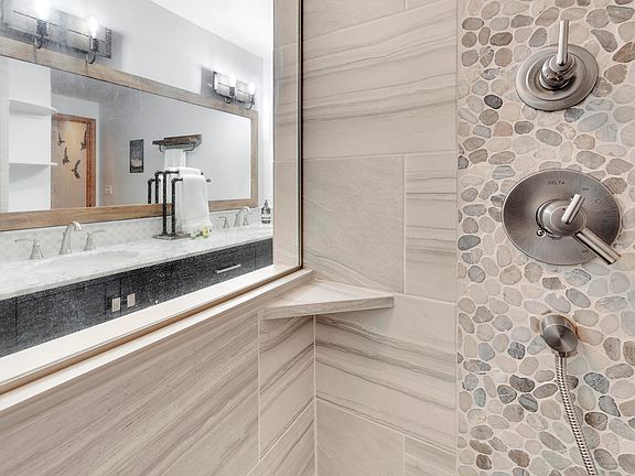 - Smart Lock(s), Breakfast Bar, Ceiling Fan(s), Double Vanity, Kitchen Island, Shower/Tub Combo, Smart Thermostat, Solid Surface Counters, Tile Shower