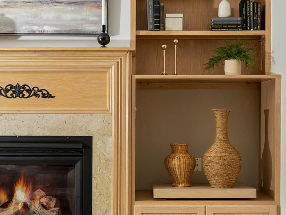 The main level includes three generously sized bedrooms and a convenient office/den just off the kitchen. The primary suite is a true retreat with its own gas fireplace, sitting area, ensuite bath with double vanity, and three closets with custom built-ins.