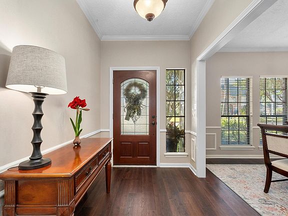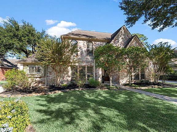 Stunning brick home featuring 4 beds/2.5 baths situated on a large lot with an inground pool and many upgrades. Beautiful new flooring installed in 2021 along with high ceilings and elegant crown molding. Left of the entryway is a formal dining room. Kitchen, completely remodeled in 2021, offers stainless steel appliances, abundant storage, generous counter space, a breakfast bar, and a bright breakfast area adjacent to the kitchen. Living area features a brick gas fireplace with large windows on each side that fill the space with natural light. The spacious primary suite includes an ensuite bath with double sinks, a soaking tub, a glass-enclosed shower, and a walk-in closet. Upstairs you will find a large game room, 3 additional beds, and a full bath. Step outside to backyard designed for fun and relaxation, featuring a sparkling pool and hot tub that were resurfaced in 2022. Neighborhood offers wonderful amenities including a community pool, playground, and tennis courts.