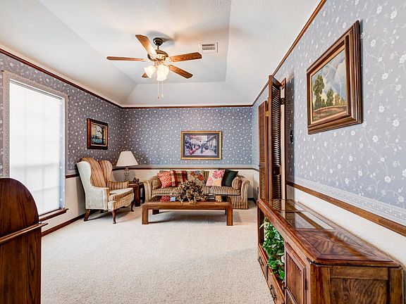 Gorgeous 1 story, 4 /2 ranch in Terranova West with brand NEW ROOF and transferable warranty! Set on a well-appointed cul de sac lot with mature trees and a peaceful brick front porch, the pride of ownership shines through in this well-maintained home. Beautifully decorated foyer opens to the home office/ formal living at the front. Spacious main living set up for entertaining- wood look tile floors, vaulted ceiling, built in cabinetry, gas fireplace, wet wine bar, and wall of windows. Kitchen complete with granite countertops, modern back splash and freshly painted cabinetry opens to attached breakfast and utility rooms. On the other side of the home, 4 oversized beds with a recently replaced carpet and generous closets. Primary bed at the back of the home with attached bath, dual sinks, soaking tub, storage cabinetry, dual closets and access door to covered back patio. Fenced back yard, detached garage, sprinkler system, recent paint and upgraded HVAC. Schedule your tour today!