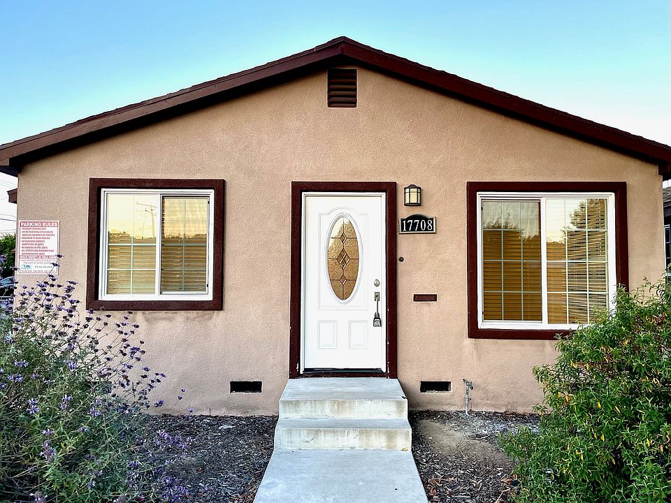Two bedroom and 1 bathroom. Inside you will find two tone paint with antique white walls and ultra pure white ceilings, doors, crown moldings and trim. The full kitchen offers quartz countertops with under-mount double bowled stainless steel sink and comes equipped with a gas powered stove, dishwasher, vented hood range, and even a pot filler. An ice maker hook up is conveniently provided for your refrigerator as well. The bathroom features tiled walls and floors, bathtub, a spa-inspired rain shower, and a multi setting hand held shower head. Medicine cabinet, a head knocker cabinet, and double towel bars are provided. The living spaces feature genuine solid oak floors, ceiling fans, and recessed LED lighting throughout. Washer and dryer hook ups are located in the hallway, stackable only. All windows are energy efficient with dual pane and low e glass. Safety and security features include hardwired smoke and carbon monoxide detectors, front and side steel entry doors, and steel plate reinforced entry door frames. Also includes a private one car garage, with one additional parking spot in front of the garage. Street parking is available as well. ABC Unified Schools. Water, sewage, trash, and landscaping are paid by owner. No pets allowed. DO NOT APPLY ON OTHER SITES CALL BEFORE APPLYING!! Premier Property Solutions, Lic #01933428 Owner pays water, sewer and trash.