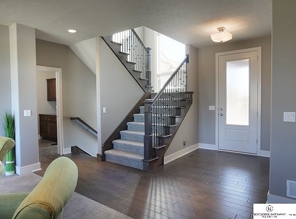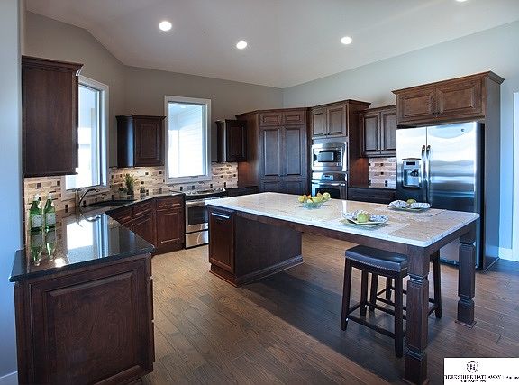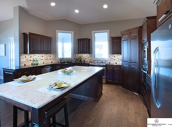 AMAZING FORMER MODEL NOW FOR SALE! Todd Menard 2 story, Elkhorn Schools. 6 BD, 5 BA home features 10' Entry-Great Room, Kitchen & Dining w/ Cathedral ceiling, Open 2-story stairway, wood floors throughout main. Main Flr guest area. Kitchen opens to covered deck-Birch Cabinets-granite throughout. Large drop zone w/ 1/2 bath, 2nd floor laundry. 2nd Floor features large master suite, sitting area, walk-in shower, stand-alone tub, 3 add'l beds & 2 baths. HERS rated $84.16 heating &cooling