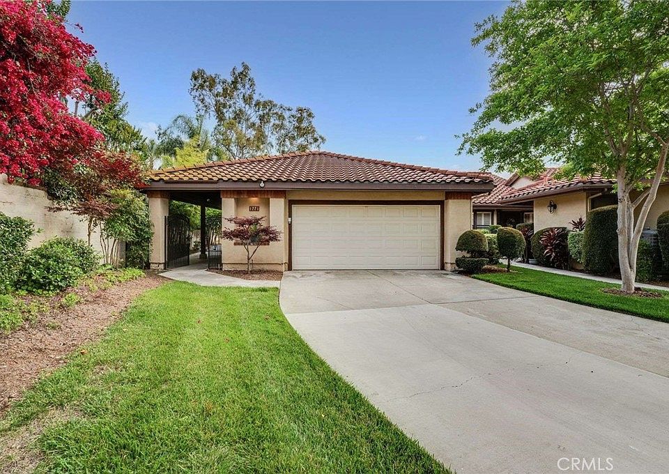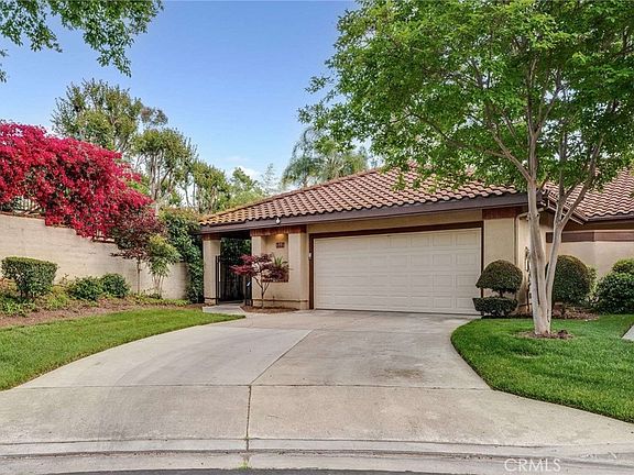 Welcome to 1771 Del Rey, a single story end unit residence in the Mountain Meadows gated community conveniently located near the 210, 57, and 10 freeways and adjacent to Mountain Meadows Golf Course and Frank G Bonelli park and recreation area. Nestled at the end of small cul-de-sac street, this property offers a serene and inviting living experience with an open floor plan and lots of natural light. The double door entry welcomes you into the open living room with custom entertainment center, cozy fireplace, open patio, and slider door to outside covered patio. The remodeled kitchen is complete with newer cabinets and granite countertops, stainless appliances including gas cooktop, oven, microwave, refrigerator, a large kitchen dining area, and a formal dining area that is adjacent to the kitchen featuring beautiful side yard views. The property offers two bedrooms and a private office with built- ins that could be used as a third bedroom. The inviting primary suite features a slider door to patio area and a walk-in closet with built-ins, primary bathroom with air jet soaking bathtub, large walk-in shower, and newer vanity with dual sinks and granite countertop. The spacious secondary bedroom has a slider door to private patio, and there is a remodeled hallway bathroom with newer vanity with granite countertop. Two car attached garage with direct access into house also features the laundry. Enjoy the private yard area with wrap around patio with newer pavers and fruit trees, large- raised planters, gorgeous landscaping, and a covered patio that is perfect for evening dining. Located close to downtown La Verne with small boutiques and restaurants, University of La Verne, Pomona Fairplex, and lots of shopping options. You won’t want to miss this gorgeous home.