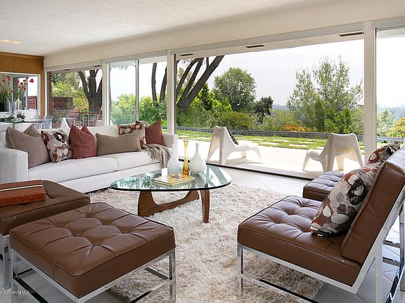 Views, Views, Views! On a clear day you can see forever! Smashing architectural 3-bedroom, 3-bathroom Mid-Century Modern offering sweeping panoramic city views of Pasadena and beyond. Truly a vacation retreat to call home, the many updated features include a gourmet kitchen with quartz-like counters and a sunlit breakfast room, a master retreat with a sleek updated bathroom, a hip living room with a vintage round fireplace and a 50's era built-in stereo, floor-to-ceiling glass doors to 180 degree views, patio and pool area. A tranquil setting with a sophisticated flair.
