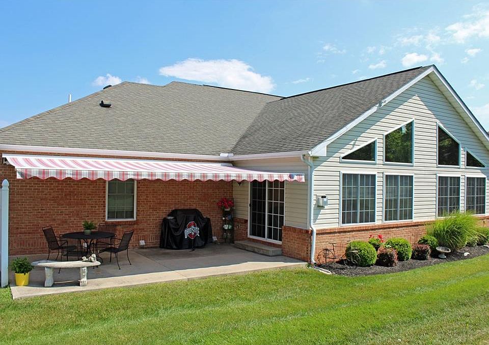 OK this is a picture of the back of the condo which is probably where you will spend the most time... you should see the view! Amazing condo at the Villas of Kingsgate. Approx 2,388 sq ft., includes finished lower level. Entry with 14' ceilings, cathedral ceilings and a den with fireplace that opens to a patio with retractable awning with magnificent views of the pond & golf course behind it. 3 full baths, a jacuzzi tub, and walk in closets on both floors. Fabulous finished basement with a 3rd full bath, a rec room with day light window, extra storage & more. Condo fees include exterior of building, roof, snow removal, grass maintenance including fertilizer & trash. Condo fees approximately $148/month. Call today!