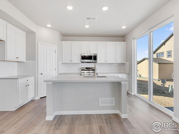 This home is eligible for a below-market fixed interest rate through Landsea Homes' preferred lender, available for a limited time. Terms and conditions apply, contact the onsite sales associate for more information! This home is our Keystone floor plan that faces East. This home will be complete September 2025. Welcome to the Keystone II floor plan! This two-story single family home features 1,988 square footage of living space, 3 bedrooms, 2.5 bathrooms, a loft, and a 3-car garage. As you walk up the front porch and through the front door into the entryway, you'll have a powder bathroom to your right, a U-shaped staircase to the second level, and a mudroom to your left with access to the 3-car garage. At the end of the hallway you're greeted by the open-concept main living area where the kitchen, dining area, and great room flow effortlessly between one another. The kitchen features an eat-at center island, pantry, and tiled backsplash. Just beside the kitchen, you'll have a sliding glass door that takes you to the backyard with the option to include a patio or covered patio which would be the perfect spot to sip your morning coffee, entertain guests, let the dogs out in the backyard, or soak in the Colorado sunshine. Heading back inside the house and up the stairs to the upper level, you'll be greeted by a loft which could be utilized as a kid's play area or homework space, home office, movie room, or any additional space you need. The primary bedroom is positioned at the back of the home with a private bathroom which features a dual sink vanity, tiled shower, water closet, and large walk-in closet. Further down the upper-level hallway, there are two additional bedrooms with a laundry room between the two and a full bathroom.