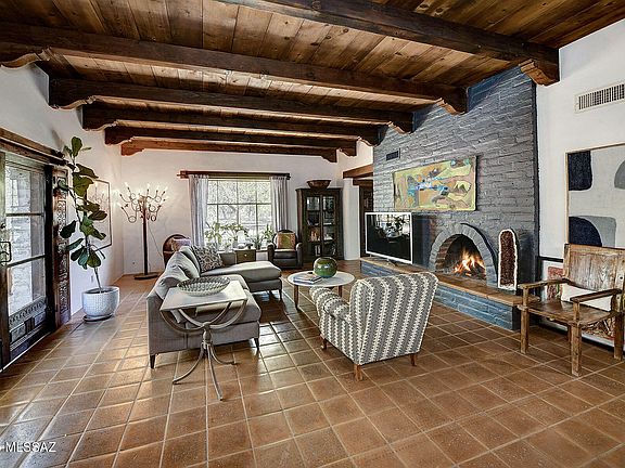 Wood-burning fireplaceArizona roomWood-burning stoveTwo bathroomsRustic artistic charmPlanked and beamed ceilingsHand-carved doors
