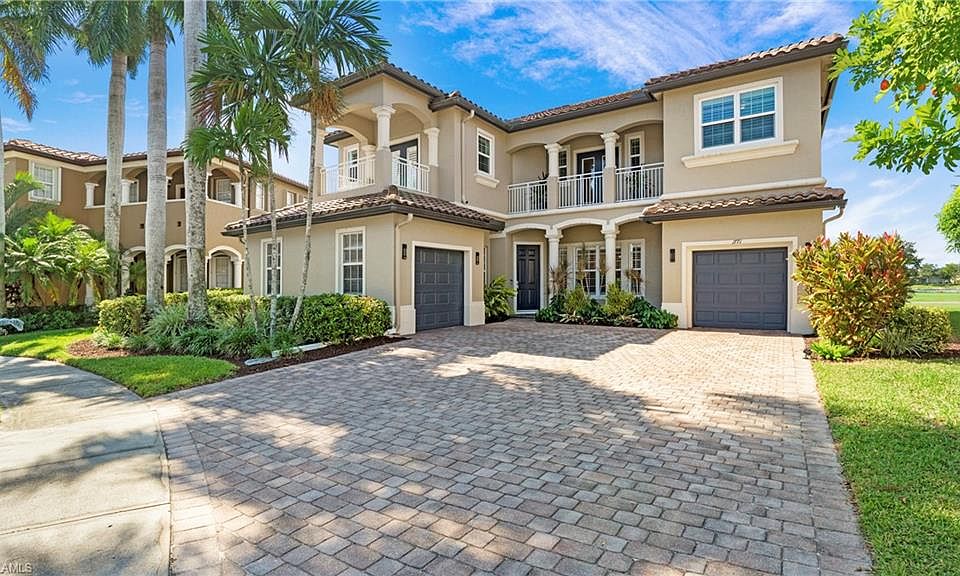 Discover your family's dream home in one of Naples' fastest growing regions in SW Florida! This spacious two-story pool home in the gated community of Valencia Golf and Country Club is perfect for families seeking room to grow and explore new opportunities. LOW HOA FEES - NO GOLF MAINTENANCE FEES HERE! The golf course is open to the public, so set a tee time, pay green fees and cart, and enjoy 18 holes of golf at your leisure! Boasting over 3,600 square feet of luxurious living space on an oversized cul-de-sac lot, this home offers breathtaking sunset views over the golf course, tranquil lakes, and lush green spaces, an ideal backdrop for family life and outdoor adventures. Inside, you'll find five generous bedrooms, including two primary en-suites that provide private retreats for everyone in the family. The versatile flex room is perfect for a home office, exercise space, or playroom, making this home adaptable to your family's needs. High 10-foot ceilings, elegant crown molding, plantation shutters, and stunning new wood plank flooring create a bright, welcoming atmosphere. The updated granite kitchen with a large center island is ideal for family gatherings and entertaining friends, opening seamlessly to the expansive lanai and sparkling pool—perfect for Florida’s outdoor lifestyle. The upstairs primary suite is a private sanctuary with a relaxing soaking tub, separate shower, multiple closets, and access to a balcony with peaceful views. The split, air-conditioned tandem garage offers flexible space as a game room or hobby area, complemented by a third single-car garage for added convenience. Recent upgrades such as a newer roof (2020), water heater (2020), pool heater, A/C heat pump system, and second floor impact resistant windows that tip out for easy cleaning and hurricane shutters on first floor to ensure peace of mind. Surrounded by mature landscaping, this home combines elegance, space, and resort-style amenities in a vibrant, family-friendly community. Enjoy the benefits of living in a rapidly expanding area filled with opportunities whether it’s community events, local parks, or the nearby beaches. Ready to start your next chapter? This exceptional property offers unmatched value. CURRENTLY THE LOWEST PRICE PER SQUARE FOOT POOL HOME IN THE COMMUNITY and won’t last long. Experience the best of Naples living, perfect for families seeking space, opportunity, and a bright future! Also an ideal property for INVESTORS!