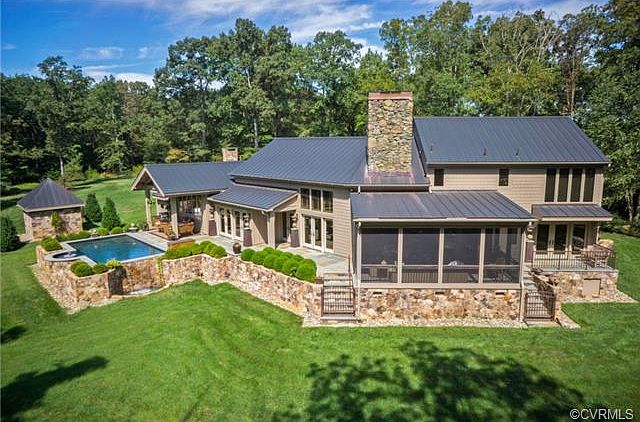 "Tannery Hill" is a sophisticated 45-acre offering consisting of 3 parcels of beautiful rolling land, 2 fenced pastures, & a 2.5-acre pond. Approximately 1/3 of the acreage is open with the remaining in lake & woodlands. The unique Rocky Mountain Lodge-styled home has been lovingly renovated, updated & expanded. The talented owner/landscape architect has lavished his talents on this property! Generous use of stone accents, native plantings, interesting planting beds & mature woodlands combine to make the grounds sparkle! From the gently curved driveway winding through the woods, to the stone gate pillars, & on to the charming house, garage/shop & barn, every detail has been carefully considered. Deep overhangs, new blue stone terraces, covered porches with French doors, & timber frame details enhance the custom-designed salt water swimming pool with spa & waterfall, located just outside the kitchen/dining room area. Interior details are just as exciting - hardwood flooring, dramatic stone fireplaces in the great room & master suite, soaring ceilings accented with custom wall treatments, thoughtfully designed granite/stainless kitchen, 2 additional suites & an office/loft! Magical!