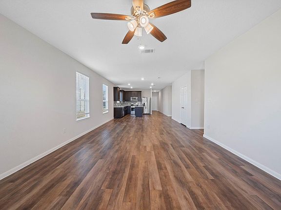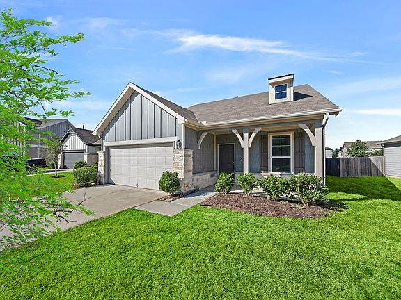 Beautiful one-story, 4-bedroom, 2-bath home with 2-car attached garage on a quiet cul-de-sac in the desirable Windrow community of Hockley. This move-in ready home sits on a nearly 10,000 sq ft fully fenced lot, offering ample outdoor space and privacy. Inside, enjoy an open-concept layout with freshly painted white walls, elegant wood flooring, and a spacious living area with ceiling fan. The kitchen features a large island, granite countertops, coordinating backsplash, ample cabinetry, and included French door refrigerator. The primary suite offers soft carpet, large windows, a walk-in closet, and en-suite bath with double sinks, soaking tub, and separate shower. Windrow residents enjoy access to Zube Spray Park, playgrounds, trails, and green space for recreation and events. Conveniently located in a tranquil setting with community appeal—don’t miss this incredible opportunity!