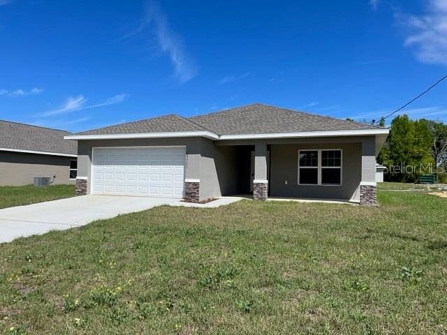 One or more photo(s) has been virtually staged. BUILDER OFFERING $2500 CLOSING COST CREDIT TO BUYERS! Beautiful new construction home, expected to be complete by end of Jan 2023! Luxury Plank Vinyl flooring throughout all living and common areas, tile in bathrooms, and carpet in the bedrooms. Open floor plan, cathedral ceilings, dedicated dining room, walk in pantry, and large kitchen island area, all done in neutral, pleasing colors. Inside laundry with W & D hook-ups. Walk-in closet in Master bedroom and double vanity sinks in master bath. Stainless steel appliance package in the kitchen. This home has white shaker-style cabinets and light luxury granite countertops. Dining room overlooks lanai. Pictures are of another home, same model. Home will have stacked stone on exterior. Please see attached documents from Builder (Builders Contract Addendum & Warranty) ASK ABOUT OFF MARKET LISTINGS. ALL DUNNELLON OAKS NEW CONSTRUCTION IS FOR SALE.