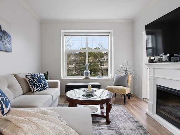 Corner unitLarge windowsCozy fireplaceGourmet kitchenRich cabinetrySleek stainless-steel appliancesGranite countertops