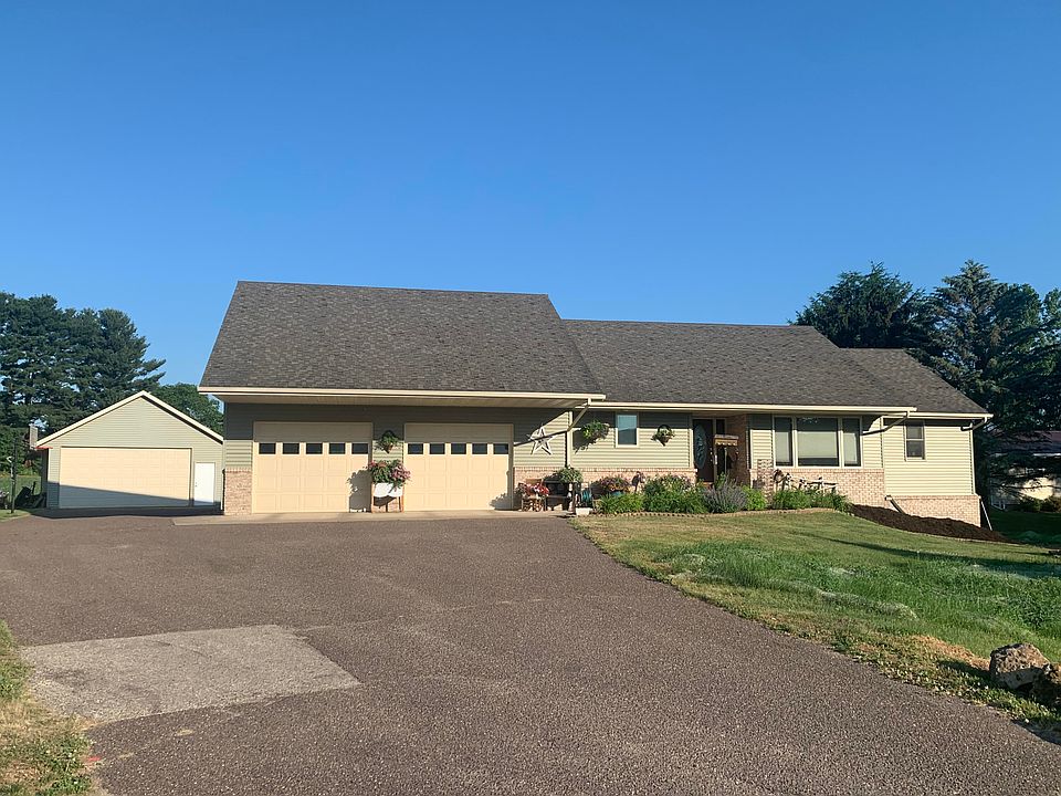 Custom home originally built for the builder himself! Home offers open concept with large kitchen full of Cherry Harvest Cabinetry, breakfast bar, vaulted ceiling, spacious living room, 3 full baths, main floor laundry, 4 bdrms, 20x20 covered rear patio, 25x35 attached heated garage w/3 overhead doors, with covered apron, 24x24 detached garage with paved drive, craft room, rec room and TONS of storage! Beautifully landscaped and located just outside of town! You won't want to miss this one!