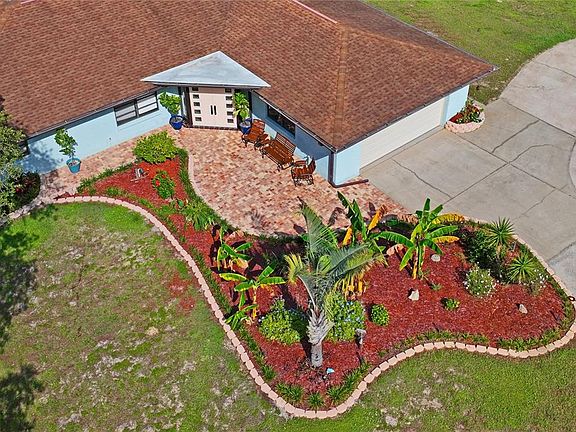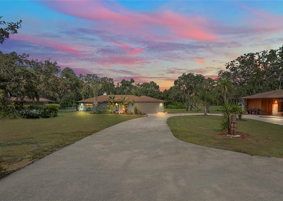 Wow, a pool home on 2 acres!!! Enjoy the beautiful Florida sunrises on the front porch in the morning and the sunsets on the back porch in the evening. This well built block home is situated at the end of a dead end street. This quiet peaceful location is zoned agricultural yet is just 3 miles from local shopping and restaurants. There is no HOA required here, situated in flood zone X. Local attractions include Sun West park just 4 miles away, Weeki Wachee Springs National Park is just 9 miles away, 40 miles north of Ste Pete Clearwater International Airport and all of the beauty of Florida's Nature Coast. The homesite has manicured landscaping and mature trees with a paved circular drive and all of the land is usable. The new paver entrance freshly cleaned and sealed. With 3000 square feet of living space the home has three large bedrooms and two full bathrooms. A home office is located just off the entrance with an adjoining door to access the living room. This home boasts a chefs dream kitchen, complete with double convection ovens, gas cook top, microwave, dish disposal. The cabinet and counter space along with 2 large pantries make this kitchen ready for all your cooking and banking gadgets and utensils. The large dining room is perfect for your family gatherings and will set 12 -14. ( The table in the home now is for sale separately) The large living space has a natural fireplace with large patio doors that open to the Lani. Through the patio doors is your totally screened in heated pool and hot tub area with large sundeck. The pavers have been recently cleaned and sealed and the pool cage has recently been pressure washed. There is a attached 2 car garage along with a detached RV height carport that includes a large cooled workshop. Home has many new updates, a list of permits and updates is on file in the MLS. Roof was changed in 2011. New Septic system in 2024.