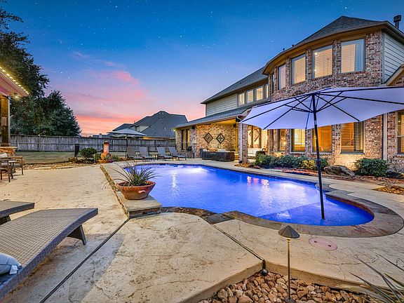 Lakes of Fairhaven is where space, style, and community come together, and 17715 Lakeside Haven Dr. delivers on every level. This meticulously cared-for Trendmaker home showcases thoughtful design and pride of ownership. The grand two-story living room with hand-scraped hardwoods and fireplace sets the tone for gatherings and relaxing evenings. The island kitchen with a generous pantry invites effortless entertaining. Two bedrooms down, including a serene primary suite with an upgraded closet and spa-like bath, plus spacious upstairs bedrooms offer flexibility for living and working. A dedicated study, formal dining, and three-bay garage add to its appeal. Step outside to your private retreat—pool, covered patio, and outdoor pavilion with fireplace and kitchen. Set on a half-acre with mature oaks and zoned to Bridgeland High, this home is a statement of quality living in one of Cypress’s most desirable neighborhoods. Low taxes, with no MUD tax, completes the amazing features.