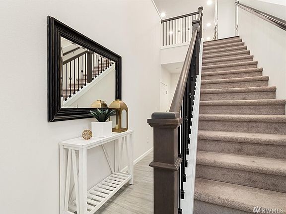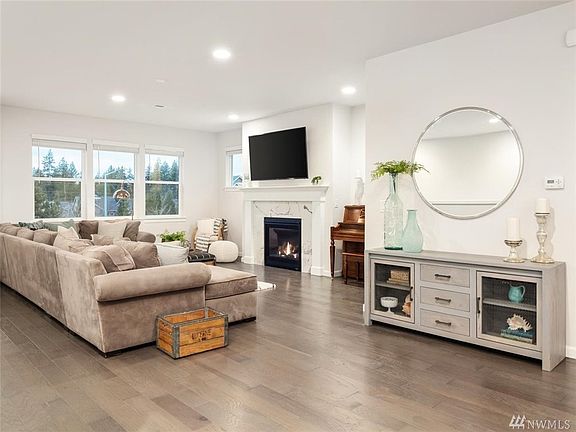 You will fall in love with this open concept layout. From the grand kitchen island to the cozy fireplace, it's the perfect space for all size gatherings. Enjoy summer BBQ's on the back deck with the gas hook-up. Watch the sunset from the Juliet porch in the Master. The 5-piece Master bath and large walk-in closet will be your new favorite space. Don't miss the high ceilings and storage space in the 2-car garage. Close to Mill Creek Town Center, Parks and 405. Does not GPS.