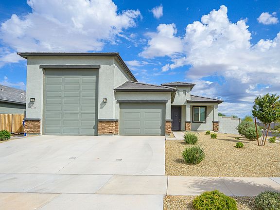 RV GARAGE! One of the few homes with an attached RV Garage and EV Charger, on a desirable corner lot along a tree-lined street. This home blends southwest charm with modern comfort. The open-concept kitchen features espresso 42-inch upper cabinets with stylish hardware, creamy granite countertops with black speckles, and a sleek oversized subway tile backsplash. Stainless Steel appliances and a large center island with additional storage make it perfect for living and entertaining. Wood-like plank tile flooring runs throughout main areas, with carpet in three bedrooms. Upgrades include a super shower in the owner suite.Backyard boasts a covered patio, artificial turf, and paver walkway for easy outdoor living. Located in North Copper Canyon with a community pool, sports courts and trails.