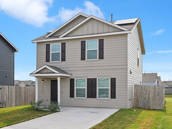 Welcome to 17717 Sulphur Spring Way, a charming two-story home in the growing Elm Creek community of Elgin. Built with modern efficiency and open-concept living in mind, this residence offers a functional floor plan, stylish finishes, and a spacious backyard. The inviting entry leads to a spacious living and dining area filled with natural light and designed for effortless entertaining. The open kitchen is both stylish and functional, featuring dark cabinetry, quartz countertops, stainless steel appliances, a gas range, and a pantry. Upstairs, you’ll find a generous primary suite with a walk-in closet and private bath, along with two additional bedrooms and a full secondary bath. The flexible layout provides ample space for family, guests, or a home office. A convenient downstairs laundry room adds ease to everyday living. Set on a large corner lot, the fully fenced backyard is ideal for pets, gardening, or outdoor gatherings. Energy-efficient solar panels are included and come with an assumable loan, offering significant long-term savings. Additional highlights include neutral finishes throughout and a two-car driveway. Elm Creek residents enjoy access to community amenities such as a pool, playground, and walking trails—all just minutes from local schools, shopping, and quick access to Highway 290 for an easy commute into Austin. This move-in ready home delivers outstanding value in a growing community. Schedule your private showing today!