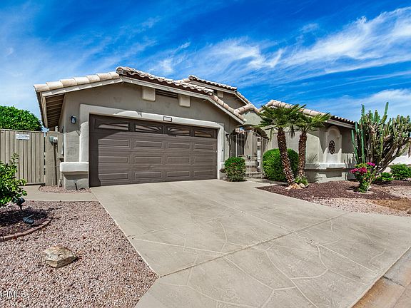 Welcome to your dream retreat in the highly sought-after 55+ Sun Village community! This beautifully maintained property offers over 1,500 sq. ft. of flexible living space, with a private front courtyard and spacious covered patio. The 250+ sq. ft. 1 bed/1 bath casita with private entrance is ideal for guests, hobbies or a home office/gym. The main home features 2 spacious bedrooms and 2 baths, a light-filled living room with soaring vaulted ceilings and a separate dining area perfect for entertaining. You'll love the updated plantation shutters and tile flooring, as well as the kitchen's sleek stainless steel appliances and charming breakfast nook. Step out back to your own private oasis, with an extended covered patio and a resort-style pool featuring an Elite pool system, cooling/heating, waterfall and custom lighting! Recent pool updates include: new pool pump, pool filter and pool water drained, cleaned & refilled. The low-maintenance landscaping and private lot add to the outdoor ambiance. In addition the waterline off of the main has been replaced, and the irrigation line in the front has been replaced. Sun Village offers an unmatched lifestyle with amenities such as golf, community pool, recreation center, fitness facilities, pickleball courts, on-site restaurant, salon, vibrant calendar of social events and EZ freeway access to anywhere in the Valley. This is more than a home--it's a lifestyle!