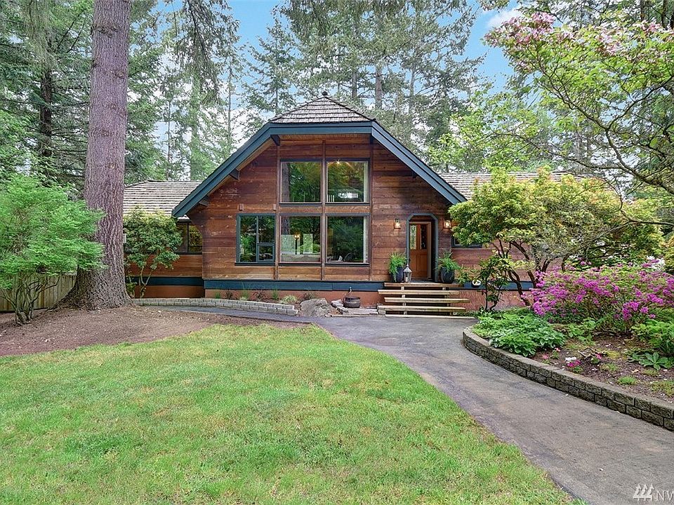 Pacific NW cedar lodge in desirable Woodtrails neighborhood on over .5 acre w/open floor plan, large chefs kitchen including quartz & wood countertops, s/s appliances ,ice maker, beverage center & built in pantry. Light filled living rm w/soaring ceilings & open staircase leading to oversized loft area. 3 bedrooms all w/vaulted ceilings, master w/private bath & walk-n-closet. New home office. Great storage off the garage. Large entertaining deck w/covered gazebo, fenced in yard, RV parking & AC.