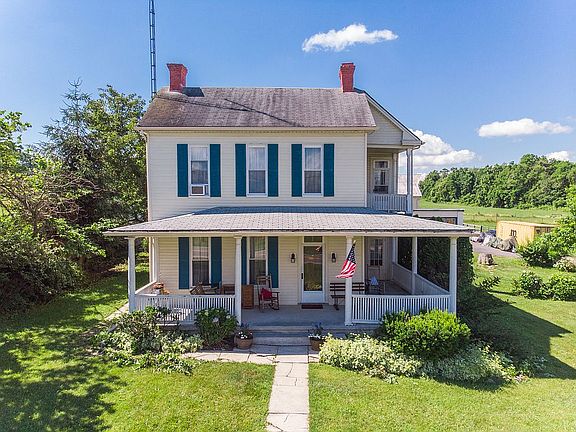 IMAGINE THE POSSIBILITIES! SO many options with this property! Dreaming of a small farmette? Need room for horses or livestock? Want to subdivide? Or just looking for a country home with space? This one has it all & MORE!! Charming 1913 home features a traditional layout with modern updates/conveniences. Main level boasts a HUGE country kitchen with 8' center island & TONS of cabinet & counter space, living room, dining room with decorative fireplace, side sitting room, laundry room option & even potential space for a future 1/2 bath. Upstairs find 4 BDRM/2 BA including the spacious owners suite with access to private porch + an ensuite full bath & walk-in closet. AMAZING original details throughout-HW floors, center staircase, moldings, built-ins, door knobs & MORE! Walk-up attic & basement with concrete floor. Outside enjoy the wrap around front porch, enclosed back porch, patio, potting shed, 2 car detached garage/workshop with electric, 2 story barn with upper loft + storage area & machine storage shed. 9.24 acres including 4 fenced in areas. Don't miss out on this opportunity!