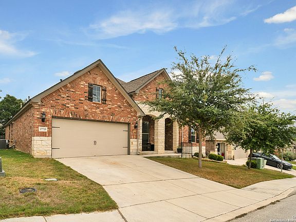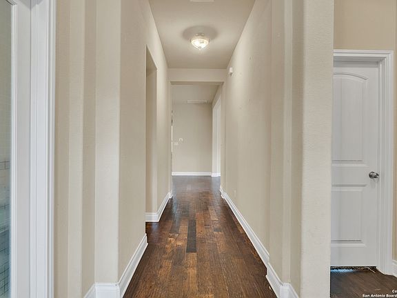 Enchanting 1 story, open floor plan, 4bdrm, 3.5 ba, game/media room, separate office & dining rm, extra-large island kitchen, 3 car tandem garage, 2938 sq ft, in The Sanctuary subdivision in Helotes, TX. Home includes stainless steel appliances, gas stove, washer & dryer. Free solar panels (18.8K system, AVG monthly power bill $59) & water softener (2.5K) & water purification system. Roof is 4yrs old. Home has grass sprinkler & alarm system. Living, dining, kitchen, game/media rooms have wood floors. Enjoy the gas lit rock fireplace & extended back patio deck (L 16 x W 18) for BBQs and entertaining. Highly rated Northside Independent School District.