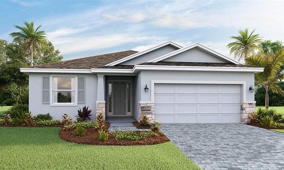 Under Construction. ALL CLOSING COSTS PAID & SPECIAL INTEREST RATES WITH OUR PREFERRED LENDER NOW UNTIL SEPTEMBER 28TH. This one-story, all concrete block constructed home has a truly open concept plan, featuring a spacious kitchen with a large quartz kitchen island that overlooks a large dining area, great room, and breakfast nook which flow out onto a covered lanai. The first phase of The Resort Club amenity center is NOW OPEN, including Trade Route Coffee Kitchen, Resort Style Pool, Fitness Center, Athletic Performance Center, and Pet Park. Future phases of The Resort Club will include a poolside bar & grill, outdoor activities area, The Event Center, and The Terrace Chef’s Patio. Future amenity centers, Adventure Retreat & Cabana Corner, will include Pickleball, Tennis & Bocce Courts, Pet Park, Golf Cart Parking, Sunset Terrace, Clubhouse, Resort Pool & Spa, Resistance Pool, Poolside Cabanas & Beach Area, Outdoor Activities Area, Poolside Grilling and more. This home comes with stainless steel dishwasher, range, and microwave. Pictures, photographs, colors, features, and sizes are for illustration purposes only and will vary from the homes as built. Home and community information including pricing, included features, terms, availability and amenities are subject to change and prior sale at any time without notice or obligation.
