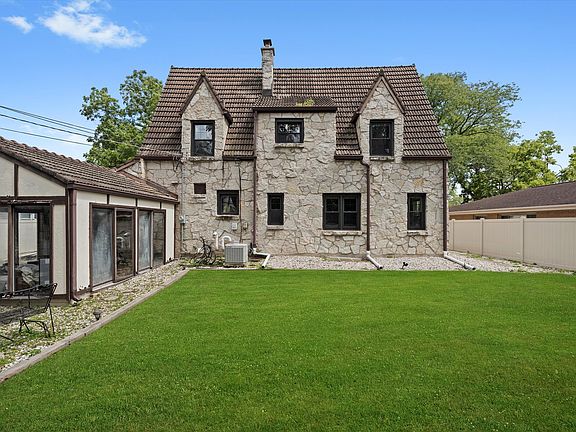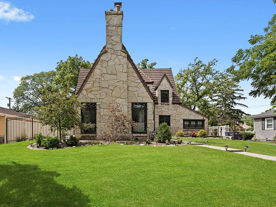 AMAZING AND UNBEATABLE CURB APPEAL!!! Presenting this gorgeous and unique English Tudor with original cement tile roof in Iroquois Community School District. This well cared for beautiful home is move in ready with so many updates! Enter through the custom solid wood door to a true Chef's kitchen with granite counters, custom cabinets and stainless steel appliances. An open layout first floor with hardwood floors and a stunning cathedral ceiling with fireplace in living room and large picture custom windows done throughout the home in 2013. Formal dining room for entertaining and a three season sunroom that looks out to the professionally landscaped backyard. A 240V exterior plug to keep your electric vehicle charged for the road. Fantastic location, close to shopping and transportation and to O'hare airport. Large nicely renovated finished basement in 2019. Other updates in the house: Full tuck pointing done on exterior(2019-2021), Custome decorative iron work front exterior windows(2021) and new beautiful fence(2013), French tile(2023), tankless water heater(2019), new boiler(2019), sump pump(2014), All downspouts were professionally buried(2020). A must see home! Hurry as this beauty will not last long in the market.