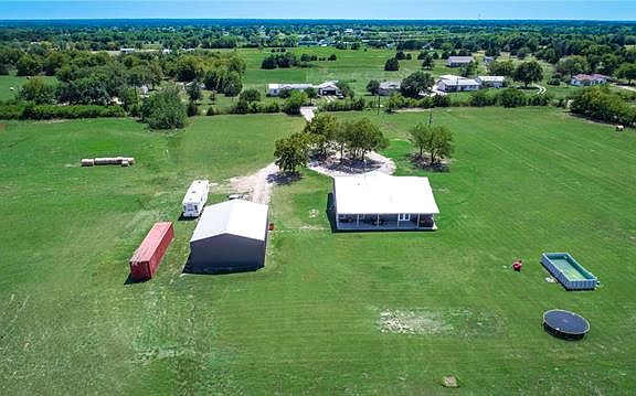 Don't miss out on this four bedroom located on approx 2.8 acres! Metal home with open floor plan, laminate plank floors, and more! Kitchen has breakfast bar and granite counters. Features covered porches on front and back, pond, fencing, ag exemption, and 30x 40 insulated metal shop! Shop is plumbed but not hooked up. Above ground pool and hot tub. Home and attic has spray foam insulation on all exterior walls. Master bath is incomplete construction and will need completion for 3rd bath.