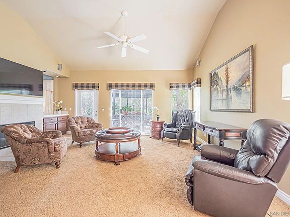 Freshly painted, Single story 4 BR, 3 Bath, 2815 est. sq. ft. w/ 3 Car Garage w/ recently repaired/replaced portion of driveway. Located in a secluded 32 home serene neighborhood on a private cul-de-sac road, next to HOA maintained open space/park (included in the low $190 monthly fees) is move-in ready. The single story open floorplan offers vaulted ceilings, wide hallways, large bedrooms (Primary Bedroom is approx 400 sq.ft.) Kitchen opens to family room- family & living rooms separated by flow through fireplace and pass through wet bar. The peaceful location is shopping & freeway close (I-15 North or South, groceries, restaurants, Auto Parkway, Mershops North County Mall) but still conveniently located far enough away to enjoy the serenity of the neighborhood. Some of the features of this well cared for home are A newer (installed April 2024) AC/ Heater system. SS Kitchen appliances including Electrolux Dual Ovens, granite counter tops- a center island w/ an LG 5 burner gas stove top, pantry+ ample storage in the numerous cabinets as well as a Bosch Dishwasher. Wall mounted Samsung TV in family room w/built in sound system stay as well as the SS LG washer & dryer.