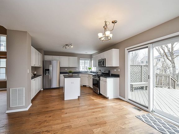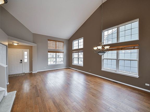 Welcome to your new light, bright and open home in the sought after Wheatlands Subdivision! Enter into the 2 story living and dining room with soaring ceilings, beautiful maintenance free luxury plank flooring and massive walls of windows! This kitchen has what is on everyone's wish list... brand new stainless steel refrigerator, stove and microwave, tons of white cabinets, generous sized island, all flooded with natural light from the big corner windows over the sink. The kitchen table area is spacious and looks over the freshly stained deck! Cozy up next to the fireplace in your sunny family room with brand new carpet. The wide open floor plan is fantastic. Take the newly carpeted stairs up to the 2nd level featuring 4 excellent sized bedrooms, all with ceiling fans, new carpet and ample closet space. The primary suite is truly a haven with its soaring vaulted ceiling, huge walk-in closet and a luxury en suite bath featuring a deep tub, separate shower and massive dual sink vanity. There's a linen closet too, you'll never run out of storage space here! A bright guest bathroom and additional linen closet round out the 2nd level. Passing through the renovated 1st floor laundry room you will find the private entrance to the awesome finished basement! Featuring Dimmable recessed lighting, a huge entertaining space, built in bookcases, storage closets, a large storage room and a crawlspace make this a perfect finished space! Warmer temperatures are coming and you will love relaxing out back on your newly stained deck, and worry free fenced in backyard featuring a raised garden and beautiful trellis detail. The attached 2 car garage has built in storage and a side door as well. Take a stroll through the tree lined neighborhood to the multiple parks and ponds in the subdivision. Conveniently located to all the shopping and entertainment that Naperville, Aurora and Oswego have to offer. Just minutes from Rt. 59 and Rt. 34. Fantastic recent updates include: 2025 - all new carpet on 1st and 2nd levels, all brand new never used Stainless refrigerator, stove and microwave, new laundry room flooring. New front door keyless entry system, newly stained deck 2021 - New Furnace, New AC, new air purification system, humidifier, Ecobee thermostat. 2014 - new roof. Welcome Home!