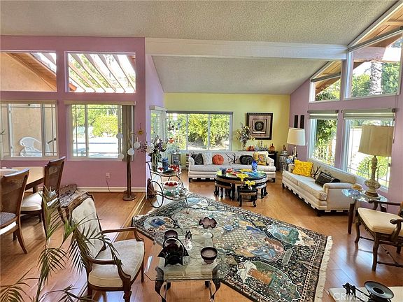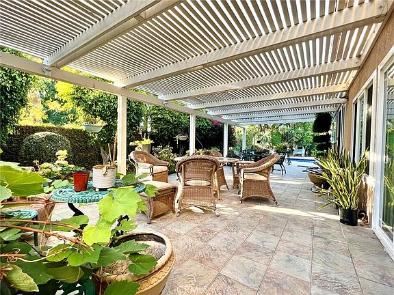 Upon entering this home, you will immediately appreciate the open layout that features vaulted ceilings and a formal dining and living room complete with a cozy corner fireplace. The main level also includes a bedroom and a full bath, providing flexibility and convenience for you or guests. A single car garage was converted into an office space. While it is not known if this conversion was permitted, it adds additional functionality to this already impressive home. The parklike yard is where this property truly shines, offering total privacy and serenity. The yard features multiple sections that currently house an array of fruit trees including Lemon, Tangerine, Apple, Fig, Grape, Pomegranate, and Sour Orange. There are also multiple seating areas, a pool and spa, and a large covered patio that is perfect for gatherings and entertaining. Overall, this home is a rare gem in a highly desirable location and offers an exceptional indoor-outdoor living experience. Don't miss out on the opportunity to make this amazing property your own.