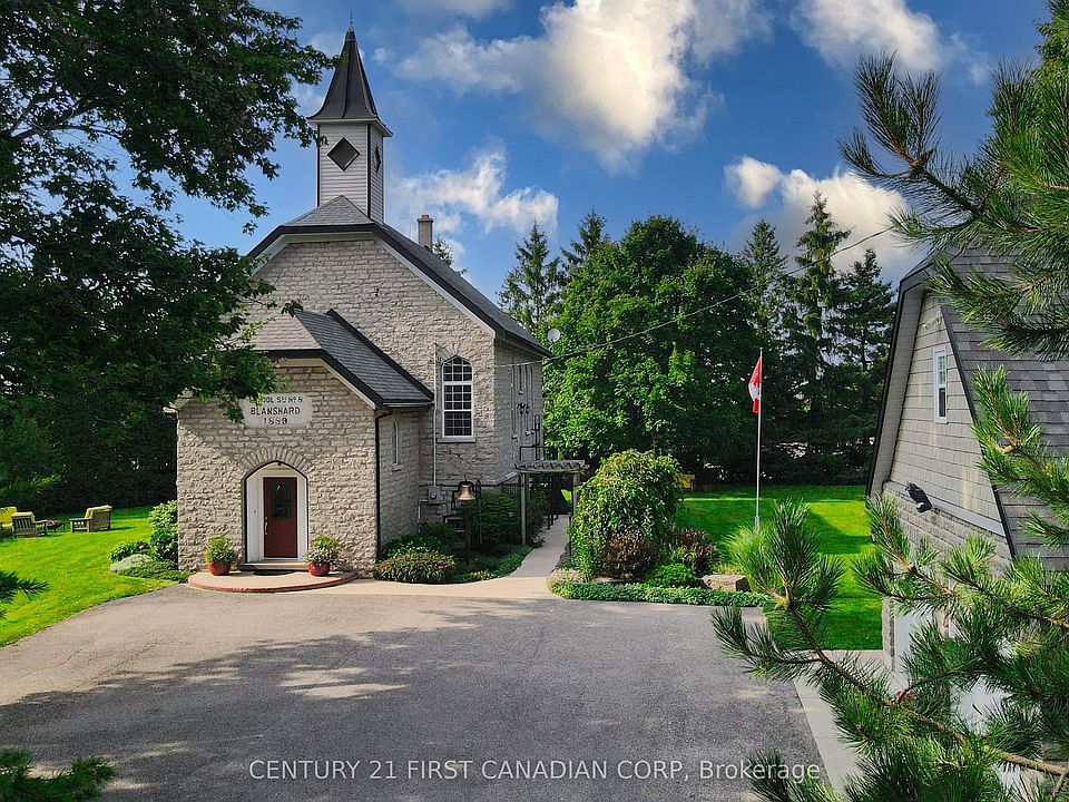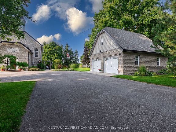 Imagine having the opportunity to immerse yourself in the rich history of an impeccably maintained and restored 1889 Limestone Schoolhouse in a quaint town outside of St.Marys. Surrounded by mature trees and hardly visible from the road is the former Rannoch Schoolhouse that helped educate hundreds of local children within its walls from 1889-1967. As you make your way inside you will be greeted with a large foyer with a wide staircase carrying you to the open concept main floor with bamboo flooring and soaring 20ft ceilings that have maintained the original rafter accents. The renovated kitchen offers granite countertops, tiled backsplash, and a pantry just outside of the kitchen. The Kitchen overlooks the dining and living space and is perfect for entertaining and enjoying home cooked meals with family and friends. The main floor also features the primary bedroom with a walk in closet and luxurious primary ensuite bathroom and a separate powder room off the main living space. The beautiful maple hardwood staircase with glass railings brings you to two more spacious bedrooms in the upstairs loft with 10ft high ceilings and a full 3 piece bathroom separating the two bedrooms. The gorgeous 8FT tempered glass windows have deep marble window sills and offer an abundance of natural light through all directions, you can even watch the sun rise and set all from inside your home. This is not your usual conversion of a heritage rich property, where often they lack sufficient usable space required for the modern day single family dwelling. This home has the character and beautiful architecture of a 1889 schoolhouse with tasteful modern day finishes that exemplify its beauty. There is also a large full basement with plenty of natural light pouring through the large above grade windows, a fourth bedroom, living space and laundry room. Outside there is an oversized 2 car garage (24FT X 26.5FT) built in 2008 with an upstairs loft for the perfect man cave, and 100amp service