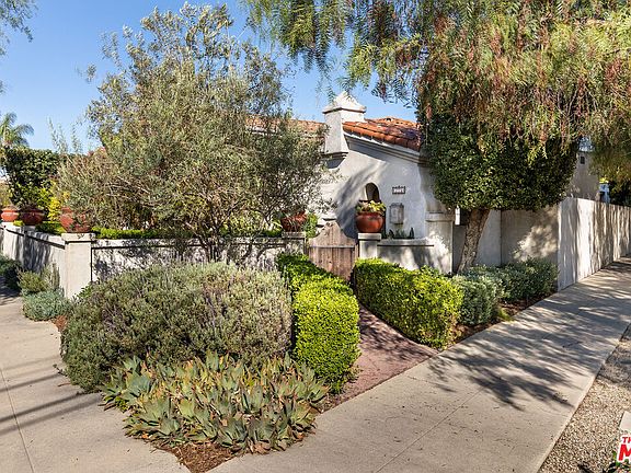Completely Rebuilt Character Spanish with Guest House in Coveted Pickfair Village. This stunning 3-bedroom, 3-bath home sits on a corner lot and has been taken down to the studs and fully rebuilt preserving its classic Spanish charm while adding every modern luxury including solar. Behind lush landscaping, a private courtyard wraps around the front of the home, creating exceptional indoor-outdoor flow for entertaining. Enter through grand double doors into a vaulted living room with a tiled fireplace and a large picture window. The open-concept great room features a chef's kitchen with a center island, top-of-line appliances, and a built-in banquette dining area surrounded by windows. Two spacious bedrooms include en-suite baths, while the primary suite offers a custom walk-in closet, views of the yard, and a spa-like bath with steam shower. The private backyard includes a fully equipped guest house with a kitchen, bathroom, and built-in Murphy bed ideal for guests, work, or rental income. Additional features include solar panels with battery backup. Prime central location with easy access to the Westside freeways, Culver City, and Hancock Park.