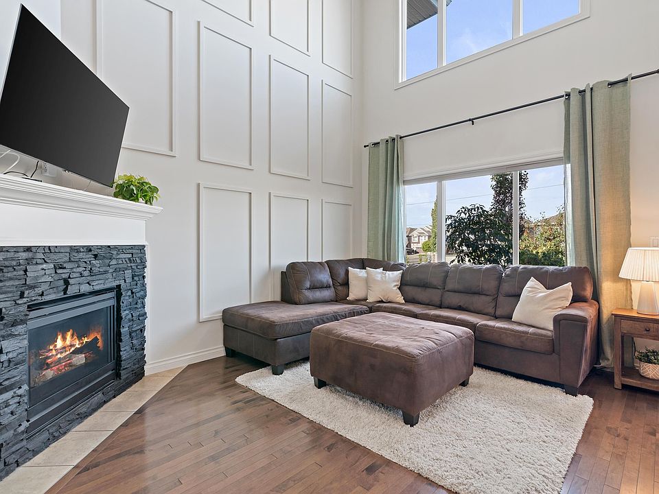 Vaulted ceilingLarge windowsOpen staircaseGranite countertopsStainless steel appliancesPantry for extra storageCorner gas fireplace