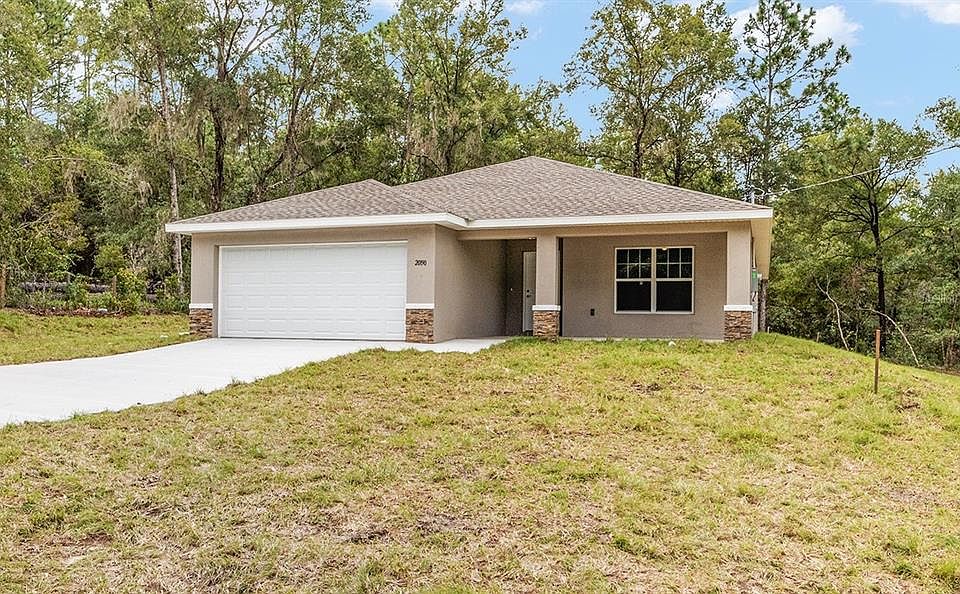 One or more photo(s) has been virtually staged. BUILDER OFFERING $2,500 IN BUYER'S CLOSING COST CREDITS! Beautiful new construction home in a newly developed subdivision. MOVE IN READY!! Luxury Plank Vinyl flooring throughout all living and common areas, tile in bathrooms, and carpet in the bedrooms. Open floor plan, cathedral ceilings, dedicated dining room, walk in pantry, and large kitchen island area, all done in neutral, pleasing colors. Inside laundry with W & D hook-ups. Walk-in closet in Master bedroom and double vanity sinks in master bath. Stainless steel appliance package in the kitchen. This home has white shaker-style cabinets and light luxury granite countertops. Dining room overlooks lanai. DISCLOSURE - Dunnellon Oaks Neighborhood is currently under study for the application of an MSTU to pave the roads in the subdivision. Pictures are of another home, same model. Home has stacked stone on exterior. Please see attached documents from Builder (Builders Contract Addendum & Warranty) Actual photos are currently unavailable. Any photos depicted are for illustration purposes only and only to show layout. Floor plan displayed is our standard plan and garage orientation may vary on actual home. Interior and exterior colors, finishes, and garage orientation will vary for actual home. Information is deemed correct, but no guarantee made.