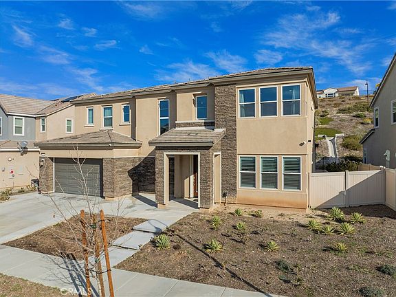 Welcome to a stunning luxury residence in the esteemed Skyline community of Santa Clarita. Discover modern elegance in this beautifully designed 4-bedroom, 3-3/4 bath masterpiece, perfectly situated in one of the area's most sought-after neighborhoods. With an open-concept layout and high-end finishes, this home offers both style and functionality. Includes almost $200,000 in luxury upgrades (ask for upgrade receipt document) Step inside to find upgraded luxury marble flooring, high ceilings, recessed lighting, and an abundance of natural light. The heart of the home is the Gourmet kitchen and great room, complete with quartz countertops and backsplash, upgraded stainless steel appliances, a spacious walk-in pantry, and an oversized island—ideal for entertaining. The great room features an expansive multi-slide (stacking) glass door that seamlessly opens to the outdoor patio, creating a stunning indoor-outdoor living experience. There’s a separate office/den that provides versatile living spaces to suit your needs. Upstairs, the primary suite serves as a serene retreat featuring elegant shutters, and a spa-like ensuite. Also an enormous walk-in closet (every woman’s dream). A thoughtfully designed laundry room with custom upgraded cabinetry and a sink adds to the home’s convenience. Includes a 3-car garage (every man’s dream). Additional highlights include solar panels, and state-of-the-art prewired surround sound system in key living areas. The clean and thoughtfully designed backyard has a sleek, low-maintenance finish, featuring clean lines and expansive hard-scaping. Perfect for entertaining, big parties or personal relaxation. The backyard features a large, HOA-maintained hill that provides exceptional privacy, ensuring no neighbors can overlook your home. Skyline isn’t just a neighborhood – it’s a lifestyle. This newer master-planned community offers not one, but two stunning HOA facilities that feel more like private resorts than common areas. Featuring a stylish clubhouse, state-of-the-art fitness center, a sparkling pool, and a separate walk-in kids' pool – perfect for family fun. Also a lounge with a cozy fireplace, a soothing jacuzzi, and two built-in BBQ grills. Close to great schools, restaurants & shopping! This is more than a home—it’s a statement of modern luxury, offering an unparalleled lifestyle in one of Santa Clarita’s most sought-after communities. Experience refined living at its finest!
