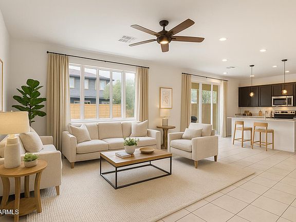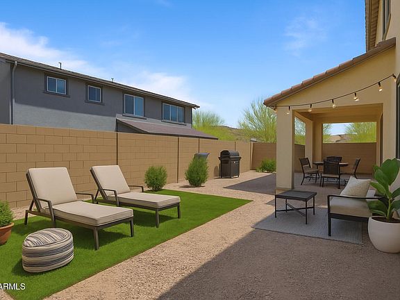 Motivated Seller - Ready to Make a Deal! This stunning 4-bed, 3-bath corner-lot home in desirable Estrella Mountain Ranch offers a thoughtful layout with a convenient downstairs bedroom, spacious open-concept living, and an upgraded kitchen with premium slide-out cabinetry. Oversized sliding doors open to a private backyard oasis, ideal for relaxing or hosting gatherings. Residents enjoy two resort-style clubhouses with pools (one featuring a waterslide), fully equipped gyms, on-site restaurants, parks, tennis, basketball, and multiple playgrounds. HOA maintains the front yard, trims trees, and hosts community events. Scenic lakes offer kayaking and paddleboarding, and the neighborhood includes a beautiful golf course. Washer, dryer, and refrigerator included—bring an offer today!
