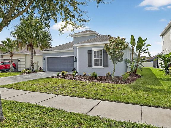 Welcome to the Enclave at Channing Park! NO CDD! This beautiful home has 4-bedrooms, 3- full bathrooms, 2 car garage and a flex room/ den which can easily be utilized as an office! Interior features include a brand-new kitchen with 42” wood cabinetry, quartz countertops, tile backsplash, stainless steel appliances, and upgraded lighting. The home also features high ceilings, fresh interior and exterior paint, and tile and laminate flooring throughout. The primary suite includes a walk-in closet and updated en-suite bathTILE FLOORS THROUGHOUT! Open concept layout with a 3-way split bedroom floor plan! The first bedroom is separate with its own bathroom, perfect to use as a guest bedroom! Outside is a LANAI, with plenty of yard space! This wonderful community has many amenities including a community pool, splash pad, clubhouse, dog park, basketball court, skate park, and zoned for ALL A-RATED SCHOOLS! Don't miss out on this one! Call today to schedule a private viewing!