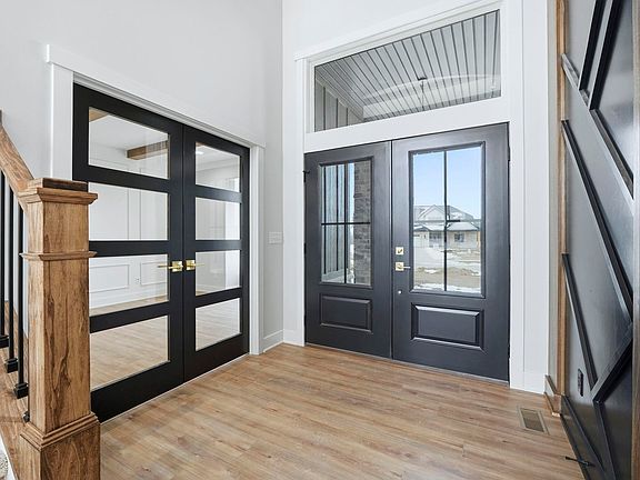 Brand new & thoughtfully designed, this stunning 5-bedroom home with a finished walk-out basement is tucked away on a quiet cul-de-sac in the highly sought-after Leo Schools! Set on a spacious pond lot, the backyard offers the ideal setting for an in-ground pool & exceptional outdoor living. A rare 4-car garage & impressive curb appeal welcome you as you arrive, highlighted by the covered front porch. Inside, the home opens to a private office just off the foyer, leading into a breathtaking living room with soaring 18-foot ceilings. A floor-to-ceiling stone fireplace flanked by built-ins & large windows that allow the home to fill with natural light. The open concept design flows seamlessly into the dining area & kitchen featuring abundant cabinetry, quartz countertops, tiled backsplash, & a hidden pantry entrance! The main floor primary bedroom showcases a tray ceiling, private sitting room, & a luxurious en-suite bathroom with tiled floors, dual vanities, garden tub, walk-in ceramic shower, & an oversized walk-in closet with custom organizers. Upstairs, you’ll find three generously sized bedrooms, including one with a private en-suite & two connected by a Jack & Jill bathroom. The finished walk-out basement expands your living & entertaining space with a fifth bedroom, theatre room, large living area, & a rec room complete with its own bathroom & wet bar! Outdoor enjoyment is easy with access to one of the best lots in Tullymore from both the walk-out basement & kitchen, leading to a covered back patio overlooking the pond. Located in the desirable Tullymore subdivision, this home is just 15 minutes from Parkview Regional Medical Center & less than 10 minutes from Leo Jr./Sr. High School - offering the perfect blend of luxury, location, & lifestyle!