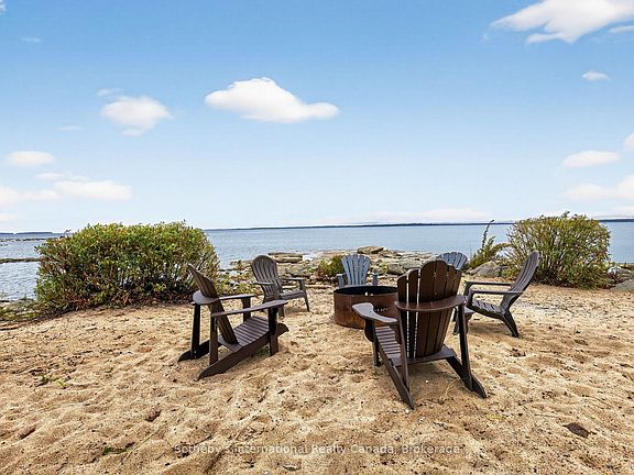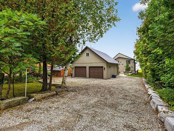 From the first light of dawn painting the bay in soft pinks to fiery sunsets stretching across the horizon, 1773 Champlain Rd offers a front-row seat to the exquisite beauty of Georgian Bay. With a stretch of natural shoreline, it delivers a true beach house lifestyle, the kind of property where the water shimmers at your doorstep, inviting barefoot days & memorable nights. This 3-bed, 2-bath beach house strikes a harmony between warmth & sophistication. A stone path leads to the front door, where the open-concept main floor unfolds with soaring cedar ceilings & engineered hardwood underfoot. Custom millwork by Interior Works Inc. defines the home, with a bespoke kitchen & beautifully finished bathrooms. Anchored by a generous quartz island & farmhouse sink. It flows into the dining area, perfect for dinners that linger long into the evening. Sliding doors open to the deck, where alfresco meals are enjoyed with panoramic lake views. Floor-to-ceiling windows draw the Bay into the heart of the home, while a Napoleon wood-burning fireplace adds warmth & intimacy. Upstairs, the primary suite is a private sanctuary. A freestanding clawfoot tub creates a sense of enduring romance. A custom walk-in closet blends function with elegance. At the same time, the spa-inspired ensuite is elevated with a generous double vanity, heated floors, a heated towel rack, & a glass curbless walk-in shower. Two additional beds & a stylish 3-pc bath create a welcoming retreat for family & guests. A main-floor laundry adds convenience, while the oversized detached garage (1344 sq ft) provides ample storage & endless potential in the loft above. The unfinished basement offers space for future customization. Completely updated inside and out. Windows & doors(2017), Tankless HTW(2024), Metal Roof(2019), Kitchen(2018), Baths(2025), Engineered hardwood floors(2025), Generac Generator(2025), Irrigation System(2019), Water Softener(2023), A/C & Furnance(2023).