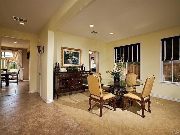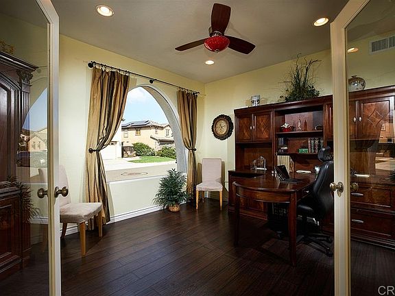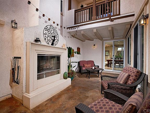 Move in ready with a POOL SIZED VIEW LOT! 5 bedrooms PLUS an office AND a huge loft (DOWNSTAIRS BEDROOM AND OFFICE)! Juliette Balcony overlooking Indoor/Outdoor ENTERTAINING CENTER COURTYARD with OUTDOOR FIREPLACE. Master suite has large, private VIEW DECK and JETTED TUB. Extra large patio with BUILT-IN PERGOLA overlooking view and WATERFALL / KOI POND. Special touches: Butler's AND walk-in Pantries, Built-in desk, air conditioning, epoxy garage floor. Don't forget San Elijo's Blue Ribbon Schools! 5 bedrooms PLUS an office AND a loft (2 rooms downstairs) Indoor/Outdoor entertaining courtyard with pool sized view lot! Pass through a beautiful rotunda entry and be drawn to an interior courtyard beckoning you to cozy up by the first of several fireplaces this indoor/outdoor entertainer's delight has to offer. Past the private rich wood office are the large formal rooms, perfect for a holiday feast, or equally, a music or game room. There is a secluded downstairs bedroom and bath, with the possibility of the office converting easily into a second downstairs bedroom, if needed. A Butler's pantry is an elegant transition to the formal dining room, but acts as a nice coffee bar or additional workstation while entertaining, too. Enjoy generous storage under slab granite counters and center island, as well as in the large walk-in pantry in this sunny kitchen. After a long day, relax in this spa-like master retreat, complete with jetted tub, or have morning coffee while taking in the expansive views from the private deck overlooking the valley below. A large loft is the perfect entertainment/game center for the kids, or an additional homework space if the built-in desk is not enough. A charming Juliette balcony overlooks the center courtyard and outdoor fireplace, with the 4th and most private upstairs bedroom having its own ensuite bathroom. Imagine dining under a pergola with backcountry views while enjoying the soothing trickle from a waterfall and koi-filled pond. A large patio gives you low maintenance living and a pool size yard! Other lovely touches include custom trimmed windows, coffered ceilings, architectural arches, air conditioning, ceiling fans, and rich window coverings. Be part of this community with a small town feel, walking distance to the town center's community services and events, as well as dining, grocery store, dry cleaners, gas station, 3 schools, parks, and 18 miles of trails. Don't forget San Elijo's Blue Ribbon Schools!