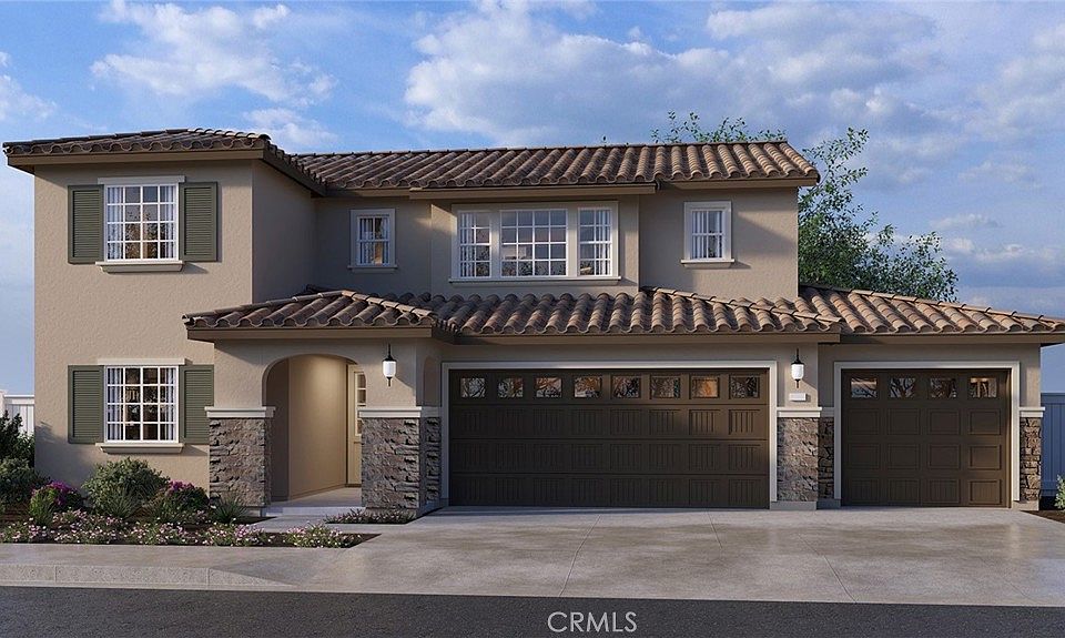 NEW CONSTRUCTION IN SAN JACINTO !!!! This lovely 2,259 square foot home has a bedroom and full bathroom downstairs. The home has an open concept floor plan with a Great room, dining area, and an island kitchen that comes complete with built-in stainless steel appliances, granite countertops, and Alto (Gray) stained maple shaker style cabinetry throughout the home. Upstairs is the primary bedroom with ensuite and walk-in closet, two additional bedrooms, a large loft, and a laundry room with extra storage. There is solid surface designer vinyl flooring throughout, and carpet in the bedrooms. This home comes complete with Smart Home technology, is all-electric, and is pre-plumbed for an electric car in the attached 3-car garage. The front yard is landscaped and irrigated. We anticipate a March 2026 move-in date and can't wait to work with you to welcome your client home!