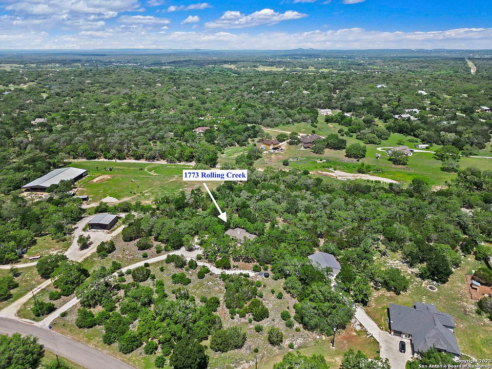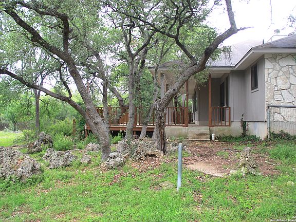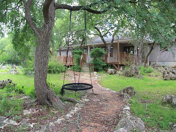 Ranch style home is nestled among mature oaks on 5 acres in the heart of the hill country. Lovely single story family home in Comal ISD (Smithson Valley High School) with 3 bedrooms, 2.5 bathrooms, and an open concept floor plan. All windows and back doors replaced with Pella double panel glass and open onto a spacious back deck that provides complete privacy. Back of property borders Swine Creek. Lots of landscaping paths throughout the property to truly enjoy all five acres! Minimal restrictions, partially fenced, low HOA fees, and PRIVATE river front and park accessed by Cypress Springs on the Guadalupe residents only through a secure access.