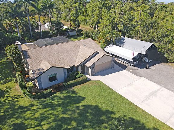Welcome to this entertainer's paradise, offering a pool, wet bar, and covered BBQ area, perfect for outdoor gatherings. Enjoy peace and tranquility with a butterfly garden. Bring all your toys! This property features an RV port (with water and 50 AMP electric service), carport, and generator hookup. The home has impact windows throughout, plantation shutters, and updated bathrooms. A safe room in the bedroom closet, finished garage, and irrigation system make this home as practical as it is beautiful. A/C (2024), roof (2013), and a whole-house reverse osmosis system ensure comfort and peace of mind. This peaceful retreat is located at the end of a quiet road. Don't miss the opportunity for the perfect acreage lifestyle. The home has been meticulously maintained by its proud homeowners. This extraordinary property provides everything you need for an exceptional lifestyle. Perfectly designed for those who love to entertain or just relax in a serene environment, the home boasts a spacious pool area and covered BBQ space with a wet bar for all your hosting needs. Whether it's a casual evening by the fire or a full-on gathering, the built-in fireplace and wet bar add that perfect touch of luxury and convenience.